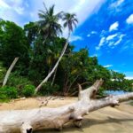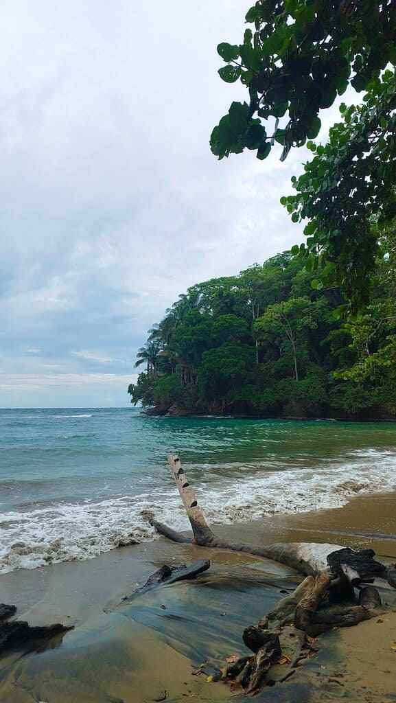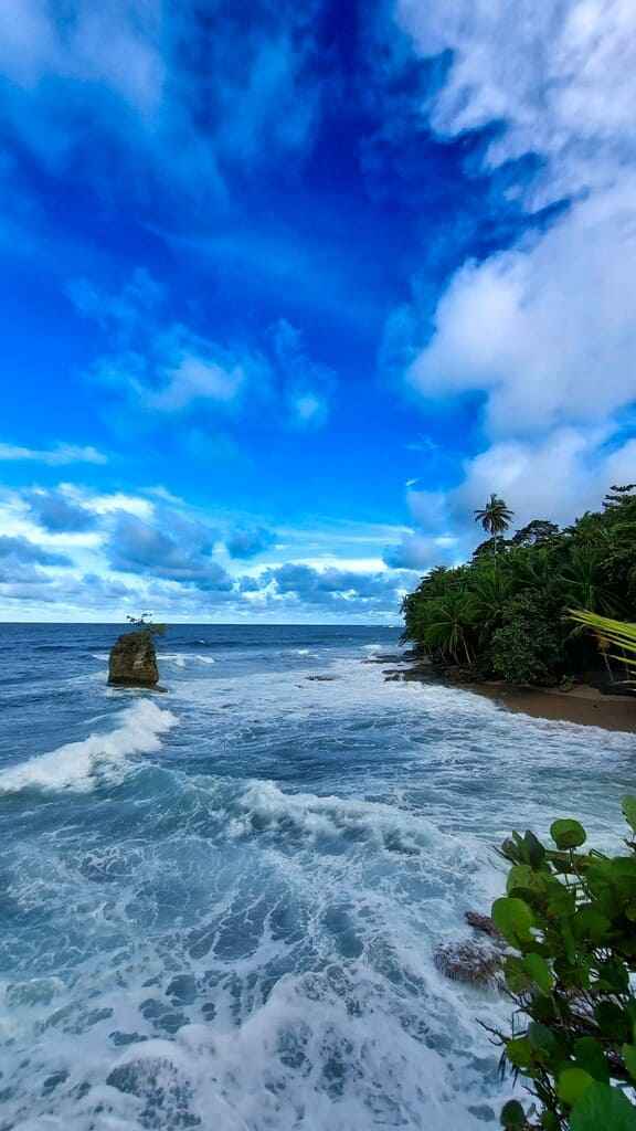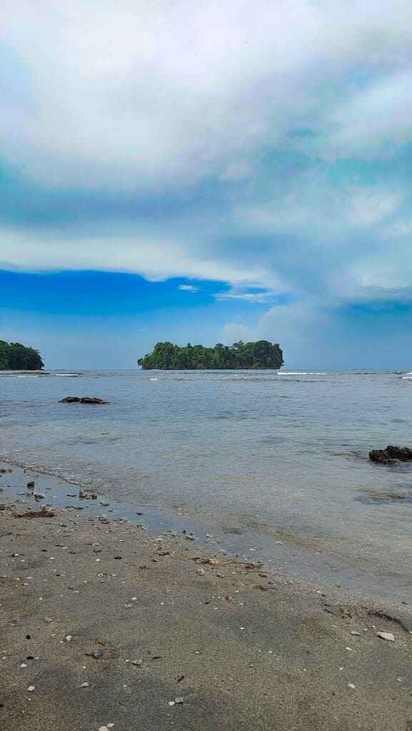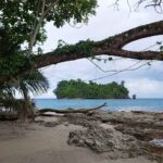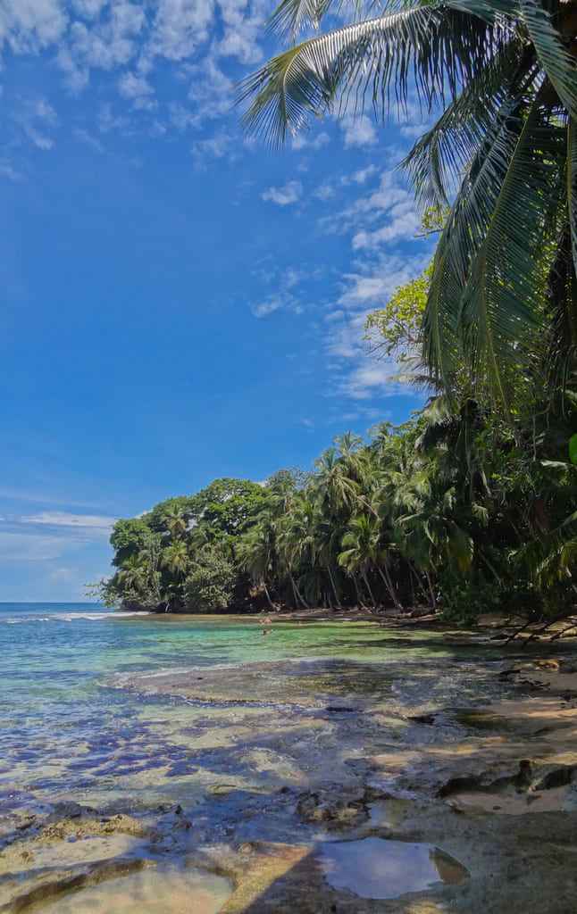 La meta es «Punta Mona», una playa a la mitad del Refugio Gandoca Manzanillo con su islote al frente, aguas cristalinas, paisajes que permanecerán en tu mente y en tus fotografías. Como dato curioso, por la cercanía con Panamá la mayoría de celulares muestra en su pantalla la hora panameña y la hora tica, lo que nos hace sentir que estamos en un sitio muy remoto de Costa Rica.