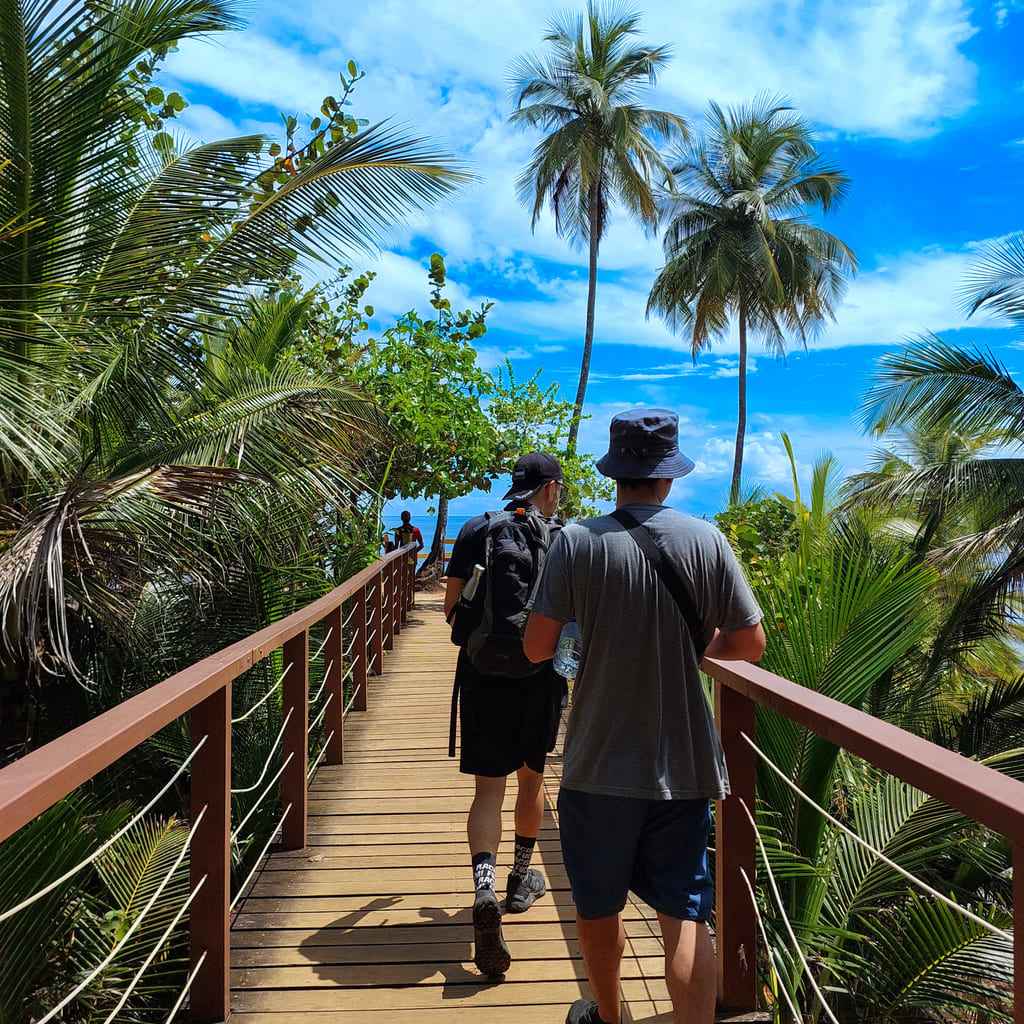 Esta ruta es dentro de exuberantes bosques primarios caribeños paralelos a la costa lo que permite observar desde miradores los arrecifes coralinos que tiñen de turquesa y azul la el océano, pero no solo observarlos, si no que llegaremos a playa Bite de arenas doradas y agua cristalina rodeada de arrecifes que por su acceso exclusivamente por sendero la hacen una playa exótica y paradisiaca.